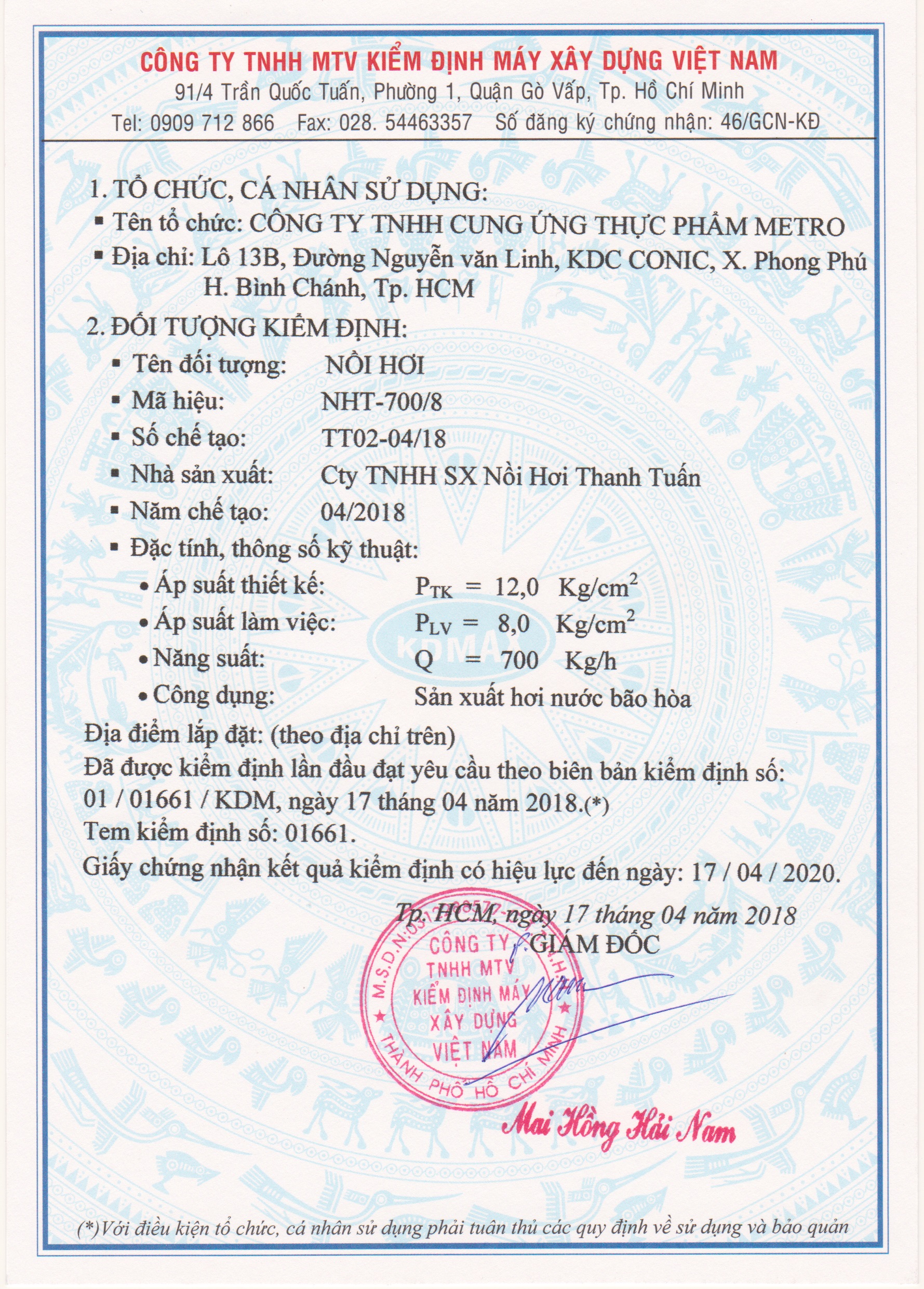 (KD MAX) LÒ HƠI 700KG/H - 04/2018