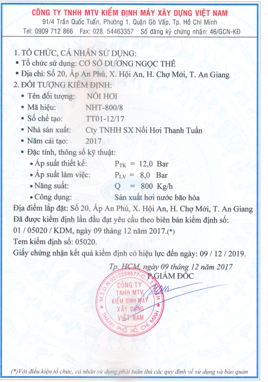 (KD MAX) LÒ HƠI 800 KG - 12/2017