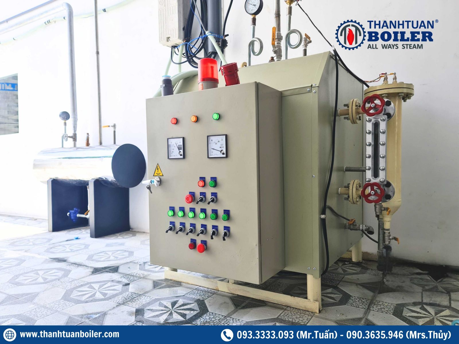 - Hệ thống van : Van an toàn, van cấp hơi, van xả đáy,... (Đức, Nhật Bản)