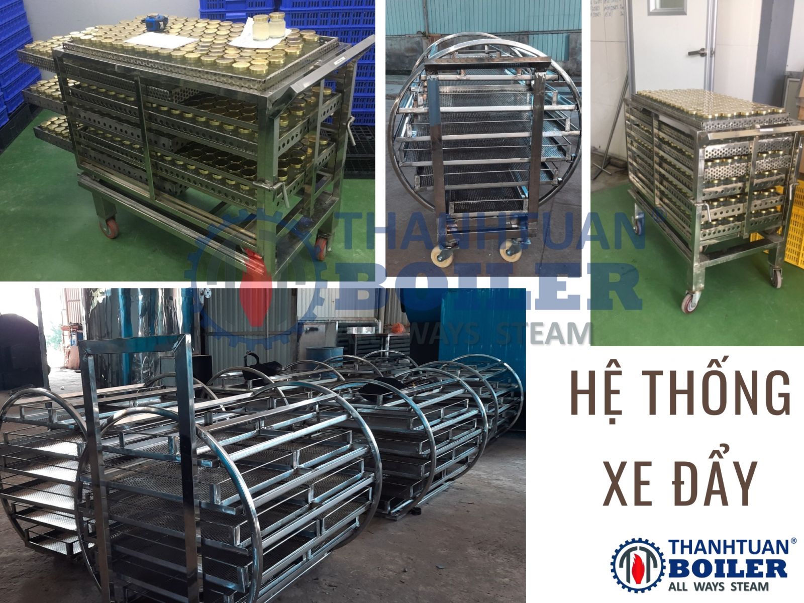 - Hệ thống xe đẩy: Bằng inox (Gia công nếu Khách hàng có nhu cầu)