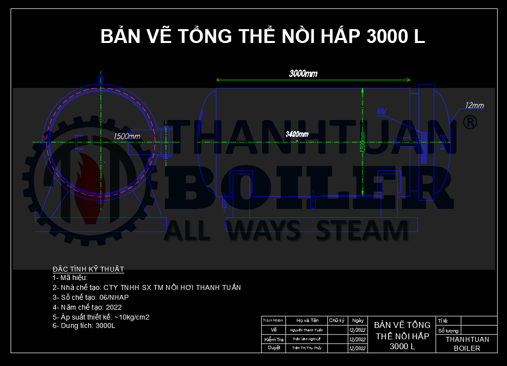 | Áp suất thiết kế | ~ 10 kg/cm2 |